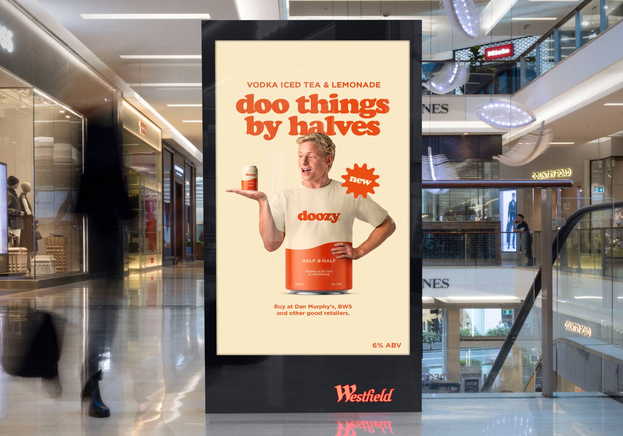 Leaning into our ‘retro’ name, we paired bold colours with refreshingly simple, colour-blocking design – deliberately breaking away from the category’s high-detail codes. A distinctive ‘retro wave’ signalled the half & half product blends, applied across packaging, POS, and advertising to cut through on the cluttered shelves of Dan Murphy’s and BWS.